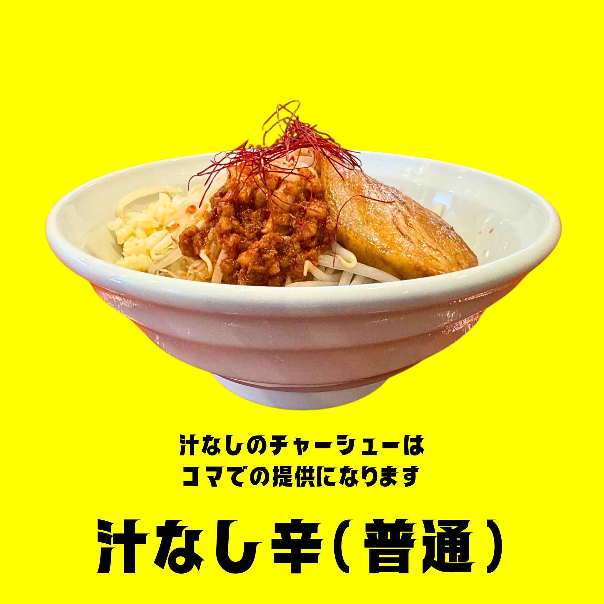※汁なし(辛含む)は、混ぜ易いよう、チャーシューの形をコマ(細かく)で提供しております。